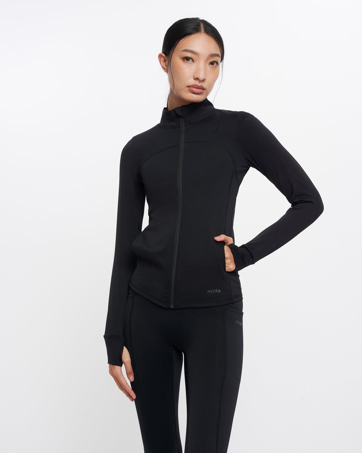 A sleek, athletic jacket designed for coverage and comfort, with features to keep you warm and moving freely. Perfect for layering to and from workouts, morning jogs, or adding polish to casual outfits.